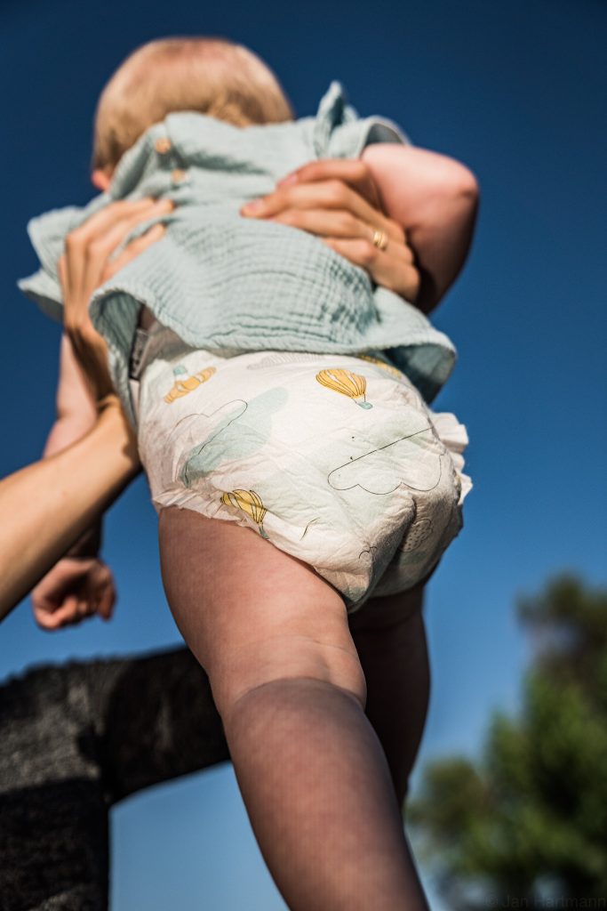 Das sind hands-down nach wie vor die besten Feuchttücher, die wir je hatten. Griffig, suppen nicht, riechen nicht unangenehm nach Chemie und bekommen dennoch Alles rückstandslos, hautfreundlich und schonend vom Popo weg. Die Feuchttücher sind 100% biologisch abbaubar, extra mild und natürlich rein. Wir bestellen die zusammen mit unseren Windeln, dazu gleich mehr.