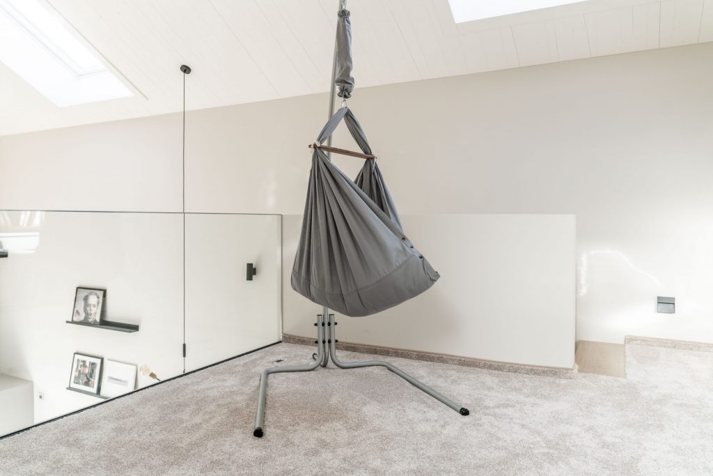 Neben der Tatsache, dass die Schlafposition in der Nonomo unter ergonomischen Gesichtspunkten ideal ist (dazu weiter unten mehr), wertet sie, wie wir finden, mit ihrem modernen Design jedes Zimmer auf. Vor allem, wenn sie an einem der speziell konzipierten Gestelle schwingt. Deswegen kommen wir nun zur Frage: