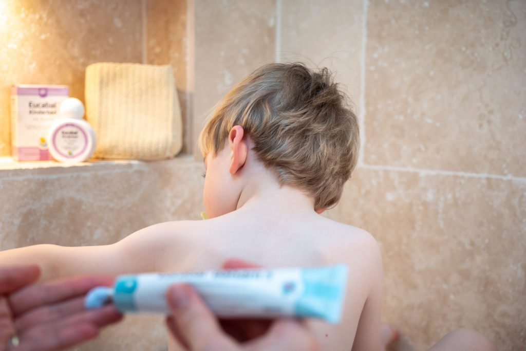 Eucabal hat einen pflegenden Badezusatz entwickelt (das Eucabal Kinderbad), der die gereizten Atemwege durch Thymian beruhigt und mit Mandelöl empfindliche Kinderhaut langanhaltend pflegt. Wie weich sich Nikis Haut nach dem Bad anfühlt! Die Produkte von Eucabal könnt ihr in der Apotheke kaufen.